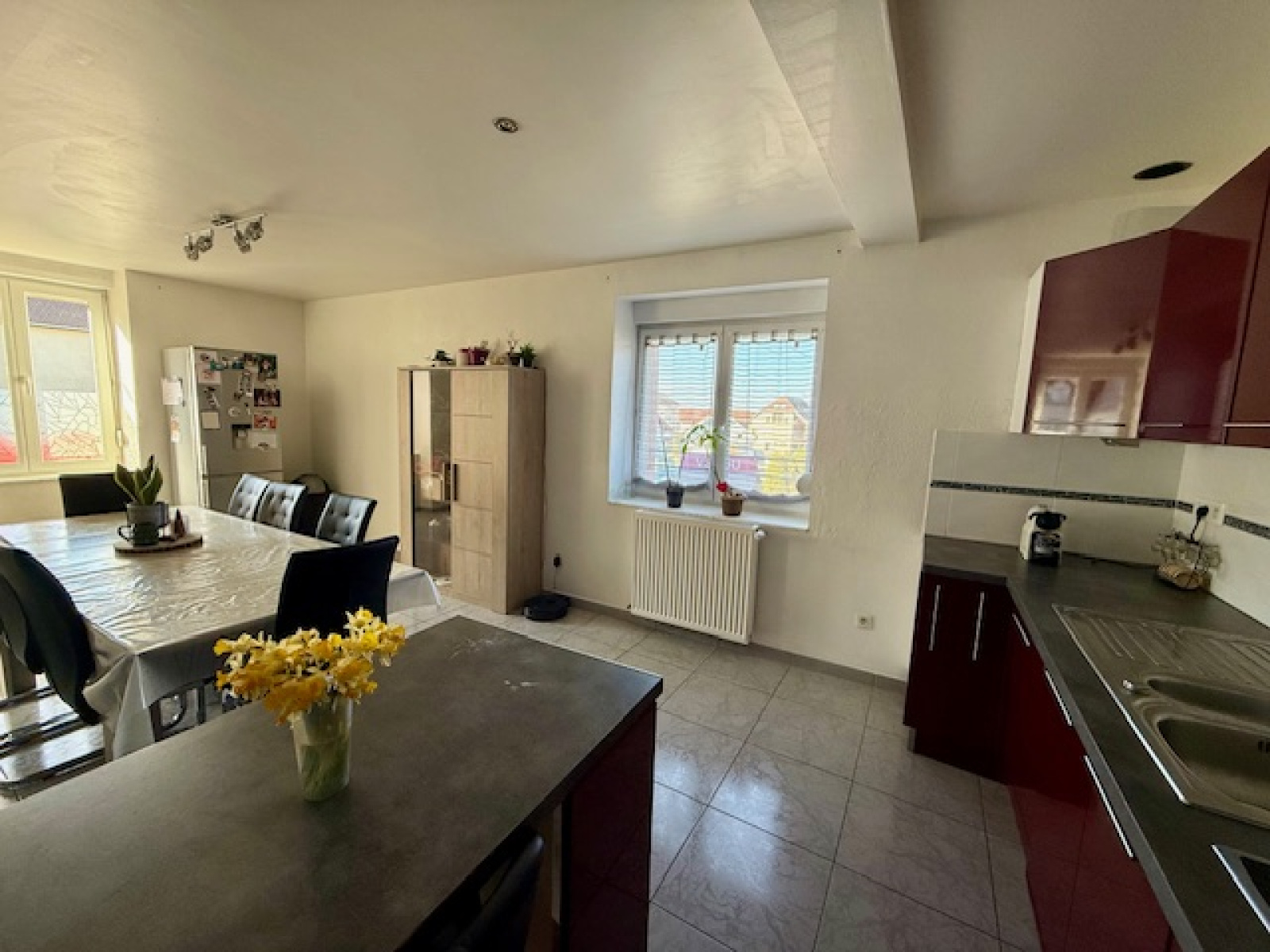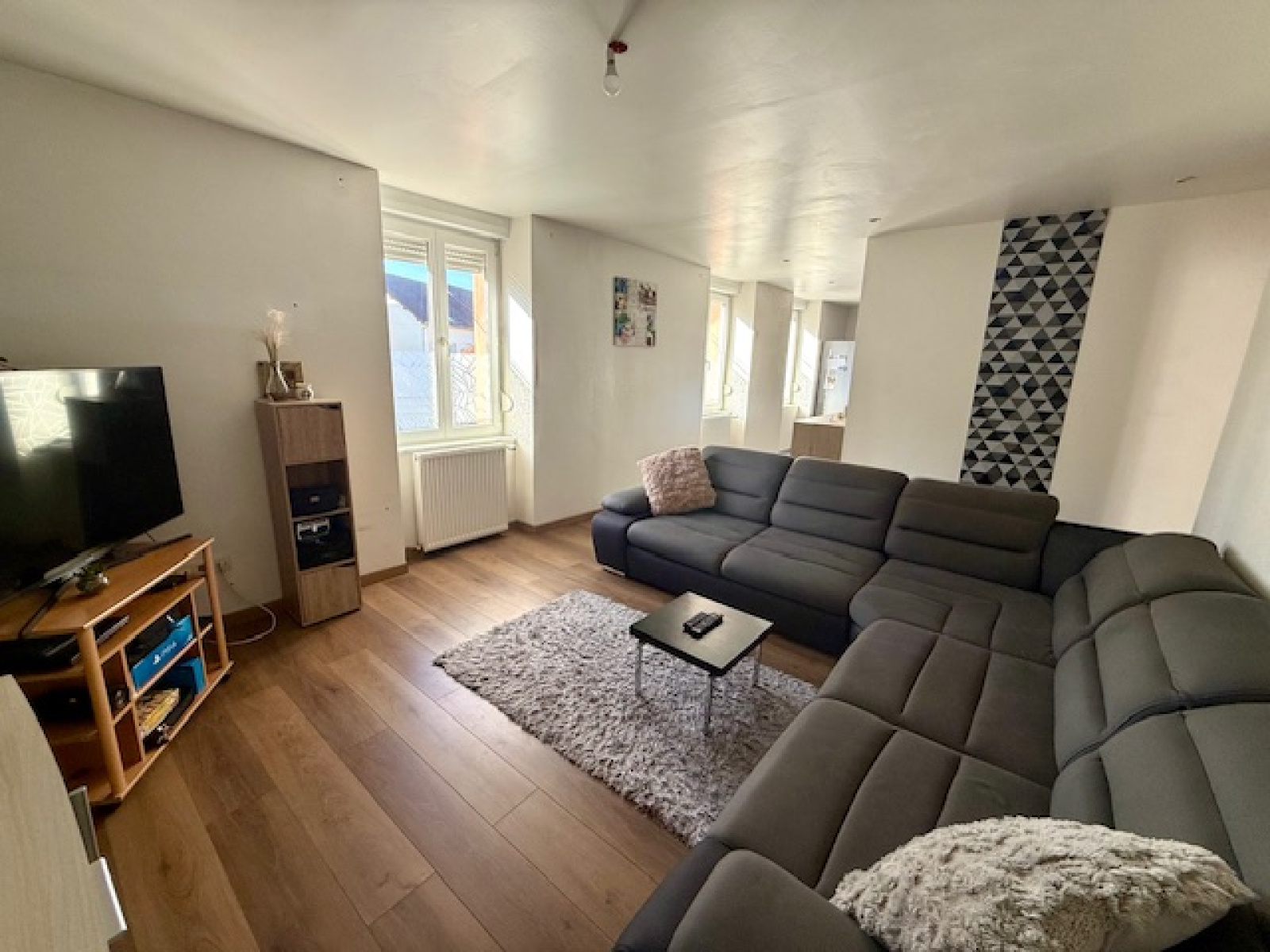 Découvrez cet appartement spacieux de 83 m² situé au premier étage d'une petite copropriété dans la grande rue de VALDAHON.
