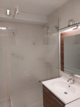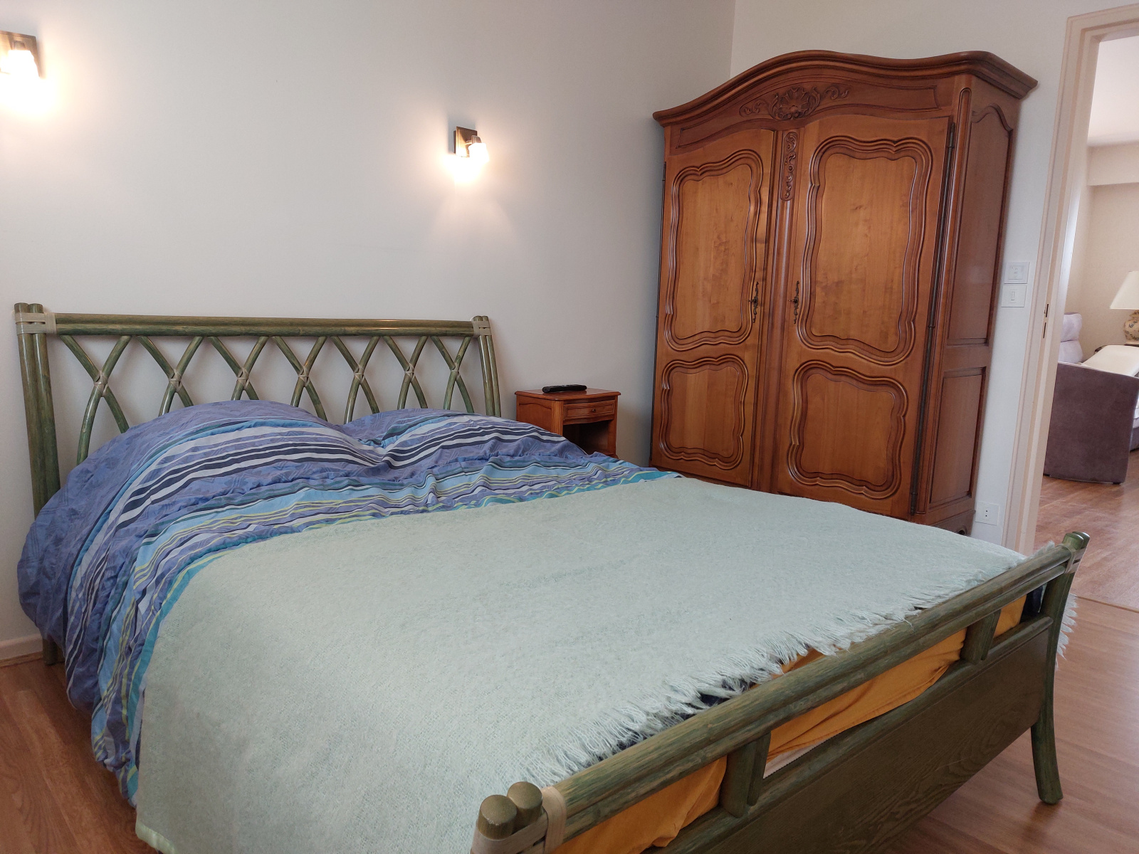 Il se compose : une grande entrée, 2 chambres, un bureau, une salle d'eau, un WC séparé, une cuisine toute équipée, un grand salon-séjour avec accès terrasse et vue sur le jardin. Il est équipé d'une climatisation réversible et d'un store électrique.