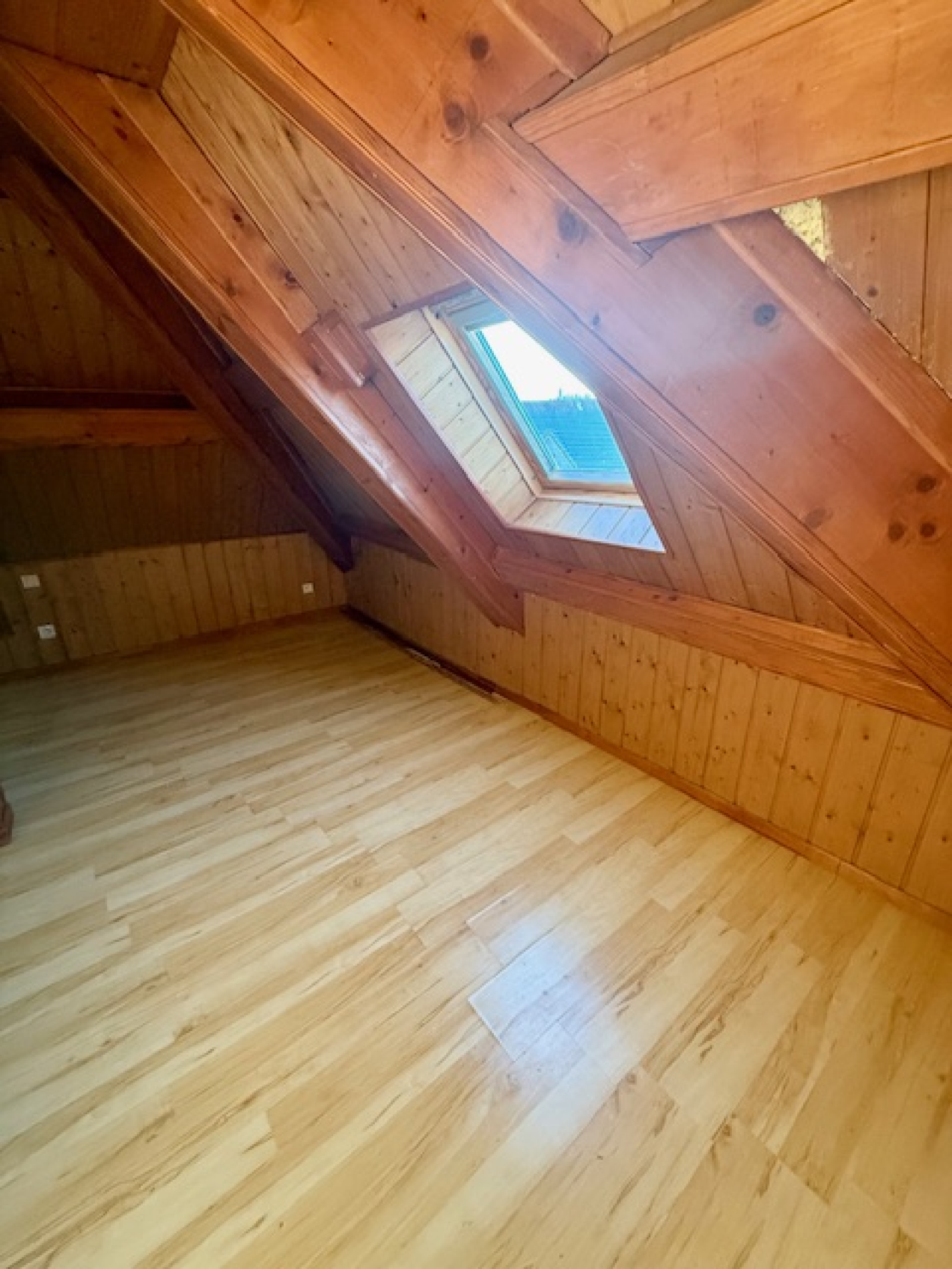 Il dispose d’une entrée indépendante et de deux places de parking privatives. L’intérieur offre une agréable pièce de vie lumineuse avec coin cuisine, une salle à manger, une salle d’eau et des WC séparés. À l’étage, vous trouverez un dégagement, une chambre ainsi qu’une pièce mansardée de moins de 7?m², idéale pour un bureau ou un espace de rangement.