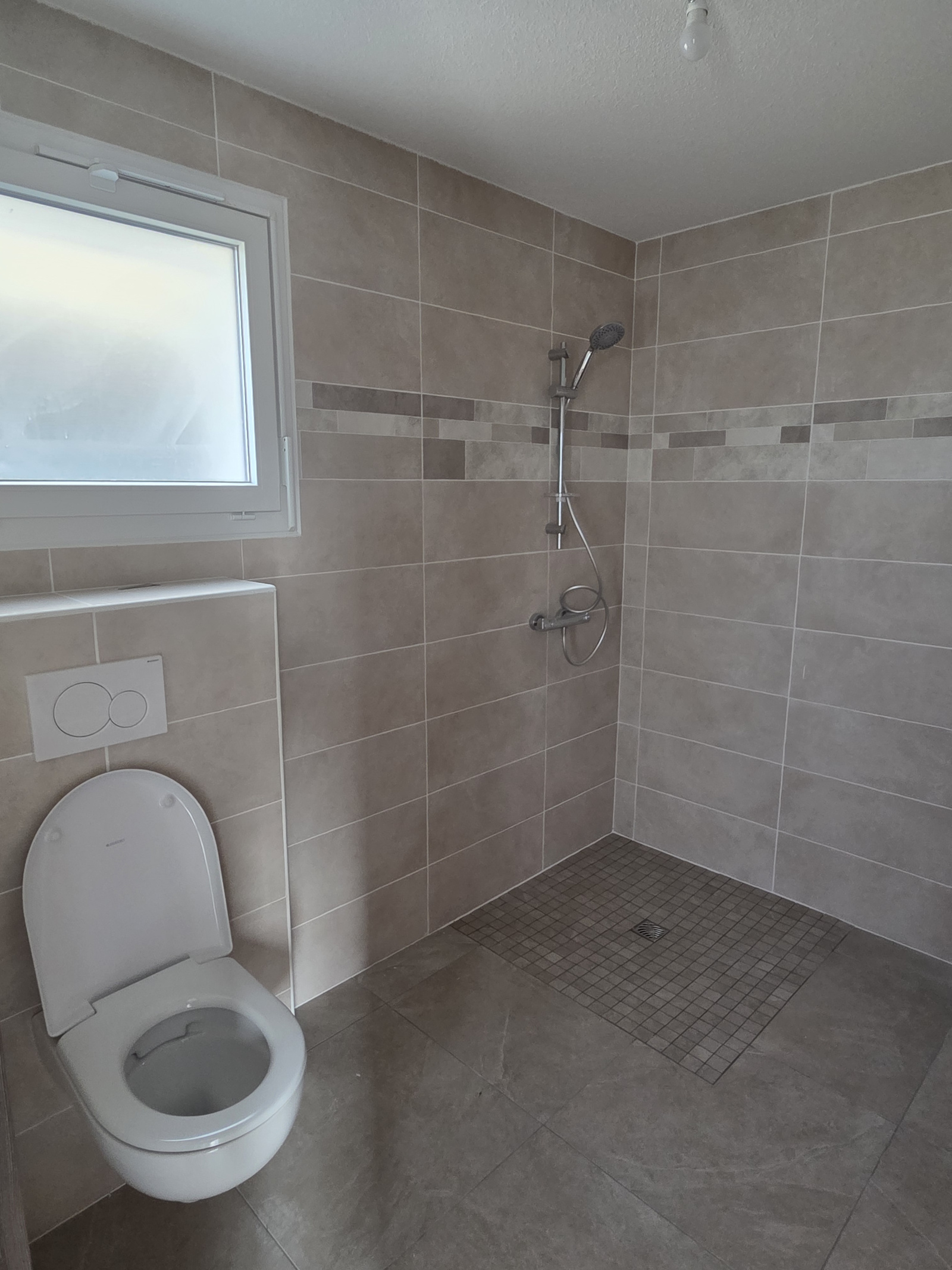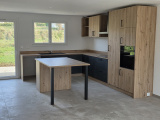Au rez-de-chaussée, profitez d'une entrée accueillante, d'une grande cuisine ouverte moderne et toute équipée, un salon séjour lumineux, une salle d'eau avec douche à l'italienne et WC.