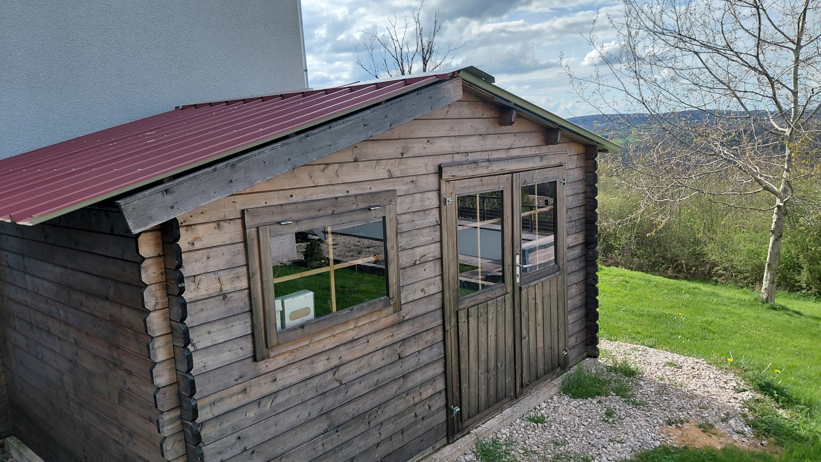 Enfin, à l'extérieur, un bel abri de jardin permet de ranger facilement le matériel d'été ou de jardinage.