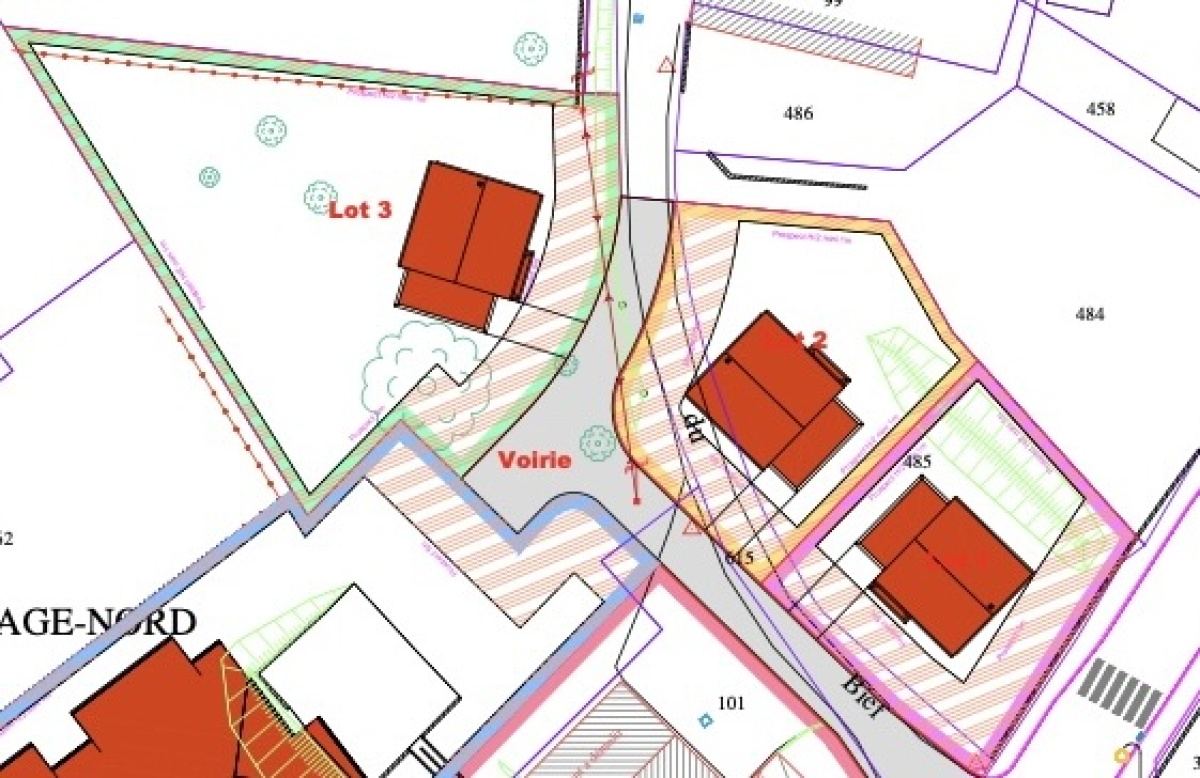 Terrain constructible et viabilisé de 1020 m² correspondant au lot 3 sur le plan.